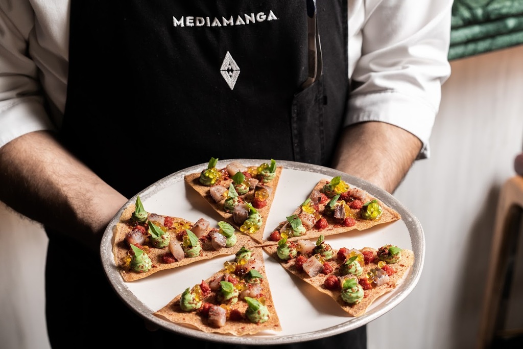 Cocina de toda la vida elaborada desde una nueva perspectiva más actual y con los mejores productos de nuestros propios huertos del pueblo de Mont en la Vall d’Aràn, de pequeños productores de la tierra y de las mejores lonjas catalanas. Buen ambiente, buena música y un espacio dinámico que te invita a jugar con los sentidos. Media Manga es una experiencia gastronómica completa que te permite compartir platos mediterráneos, acompañados por los mejores vinos, en el mismo centro de Barcelona.